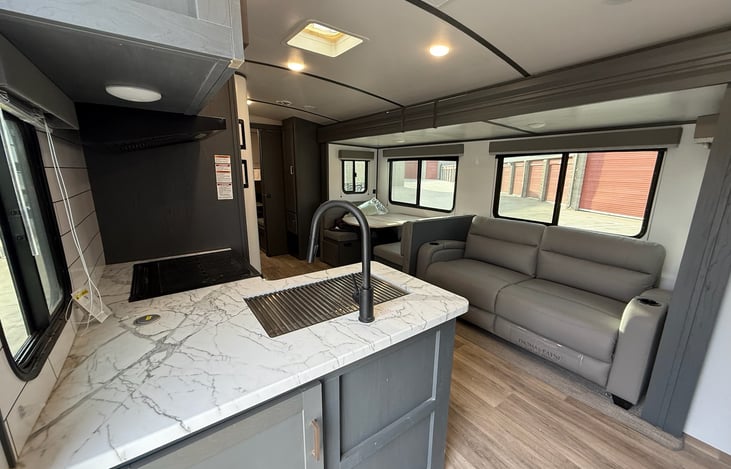 Welcome to the Adventure Bullet's listing! The trailer has a modern farmhouse look and the wife did a great job decorating and making it feel homey.