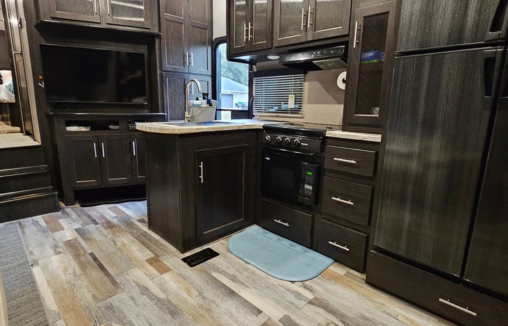 Enjoy this Coastal Cottage on wheels by the water or your favorite Central Florida location with amazing views. No matter the location, this Toy Hauler 5th Wheel is FULLY STOCKED with all the essentials of home that you could possibly need, to have an amazing stay! Sleeps 7