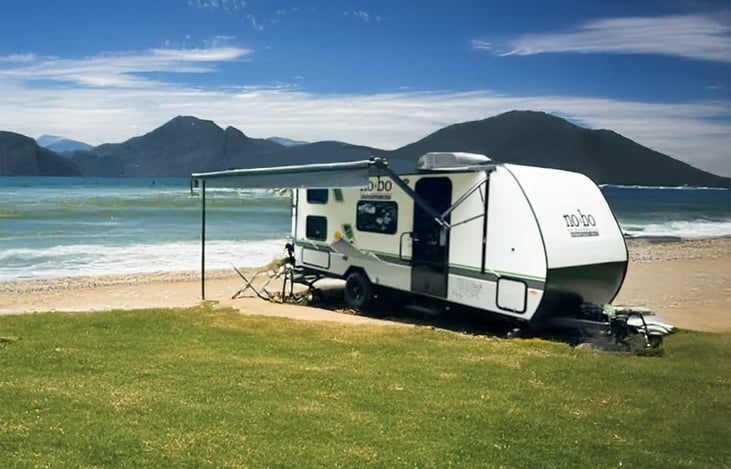Looking for a cozy, fully-equipped adventure on the go? Our NoBo 19.3 travel trailer is the perfect home-away-from-home for your next getaway! With a queen camper bed, a dinette that converts into a bed, and two double bunk beds, there's plenty of room for the whole crew.