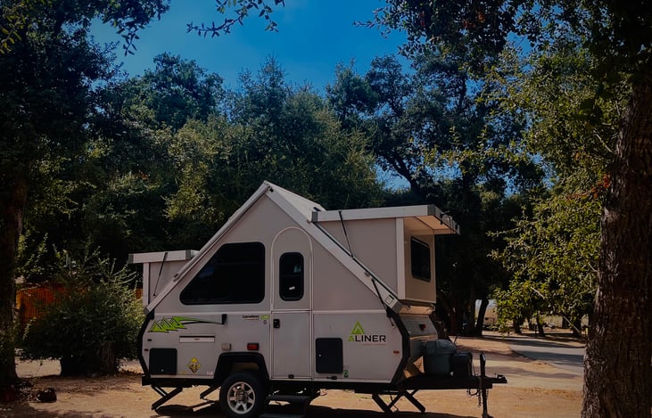 This stationary cozy A-frame RV at KOA Boulevard Campground is the perfect rental for a comfortable retreat in the woods. Nestled among tall trees, it offers a peaceful setting while providing full amenities for a stress-free stay. Inside, you'll find air conditioning to keep you cool, a mini-fridge, microwave, heater and a private bathroom for added convenience.