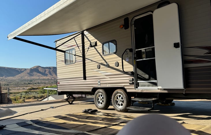Hi fellow Campers! We are Chris & Jessica and we have enjoyed our toy hauler/travel trailer “Wolfie” since 2023. We have been to places like Santee and Calico as well as other campgrounds in and around the High Desert area of Southern California.