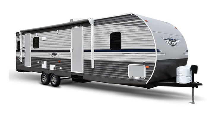 The RV is Veteran owned and Operated by LCF Rentals . you will find all the amenities of home it comes fully stocked with Pots & Pans, Toaster, Coffee Pot, Air Fryer, Plates, Bowls, Cups, Silverware, Cooking Utensils, Bed Linens for all beds and hand towels for the sinks. This camper well maintained and very spacious and comfortable.