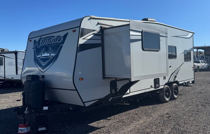 Welcome to our 2023 Eclipse Attitude Limited 2414BSG! Weighing only 6700LBS, this unit will sleep 8 people comfortably. It has been great for towing with 1500+ trucks and includes a brand new B&W weight distribution hitch with included hydraulic system. The unit will come with 2 full propane tanks and a 100 gallon full fresh water tank, if you want it filled, and an onboard generator.