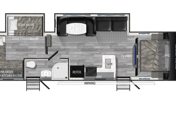 If you’re looking for a travel trailer that has everything for a larger family, this is it. A literal home away from home, this dual slide home on wheels has a separate bunk room and master bedroom.