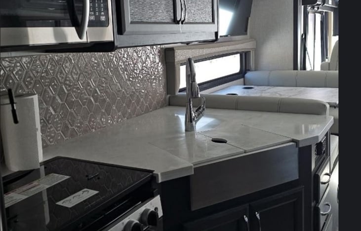Introducing our stunning 35-foot luxury RV, designed for ultimate comfort and convenience! This spacious home on wheels features a king-size bed, ensuring a restful night's sleep, and can accommodate up to eight guests—perfect for family adventures or trips with friends.