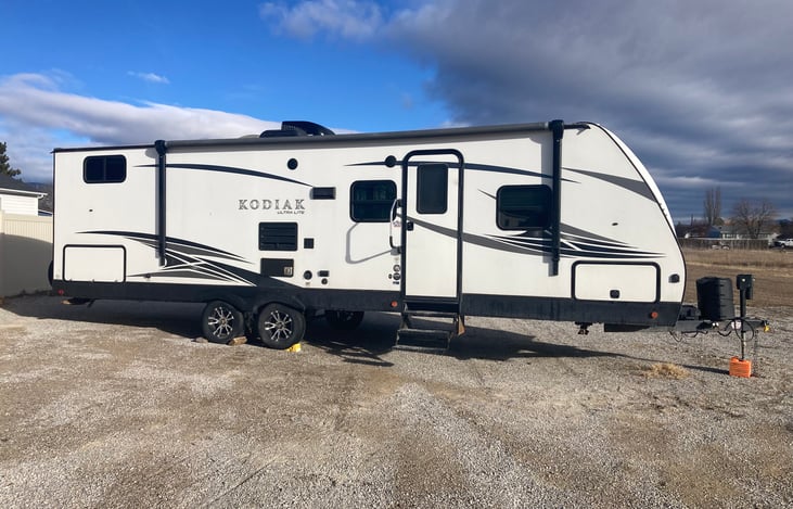 Our Dutchmen Kodiak is the perfect home on wheels for your next adventure. Designed with families in mind, this spacious travel trailer comfortably sleeps up to 9 people and features a separate bunkroom for the kids to play and sleep. The main bedroom features a queen bed with plenty of storage.