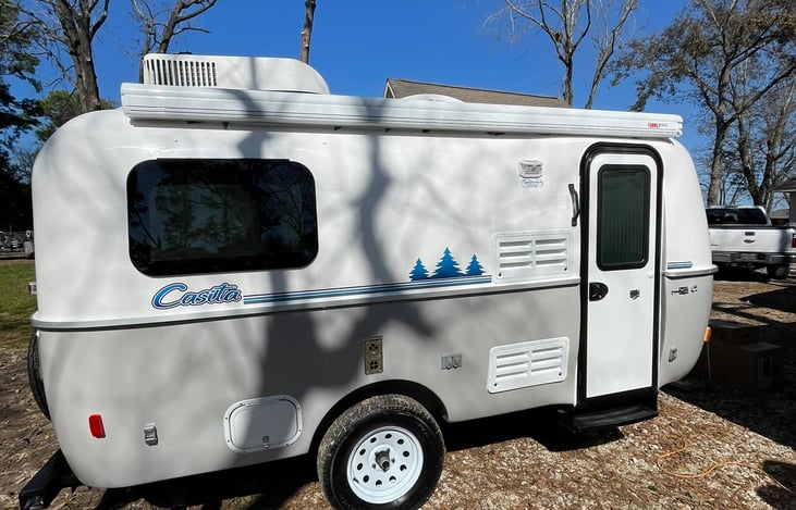 Our "Ultra Casita" Heritage17 Deluxe has it all: slim efficient roof mount AC, fully self container bathroom, solar, awning, double propane tanks, 3-way fridge, outside shower, American made weight distribution hitch.