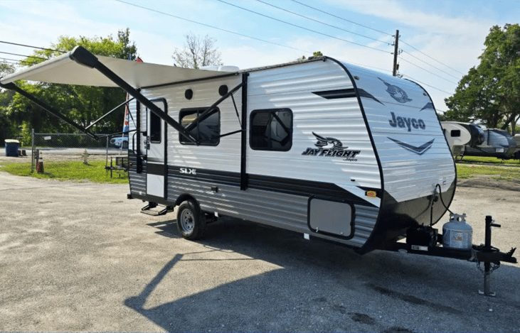 On our travel trailers, we provide you with a weight distribution hitch, which we will set up and adjust for you when you pick up the unit. It makes pulling the RV easy and helps keep it from swaying.