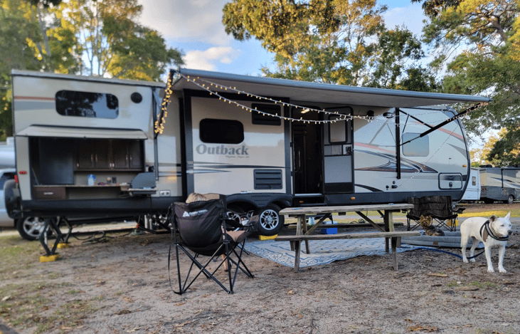 The Keystone Outback 323BH is a high-quality travel trailer that offers a spacious and luxurious camping experience, ideal for families or large groups.