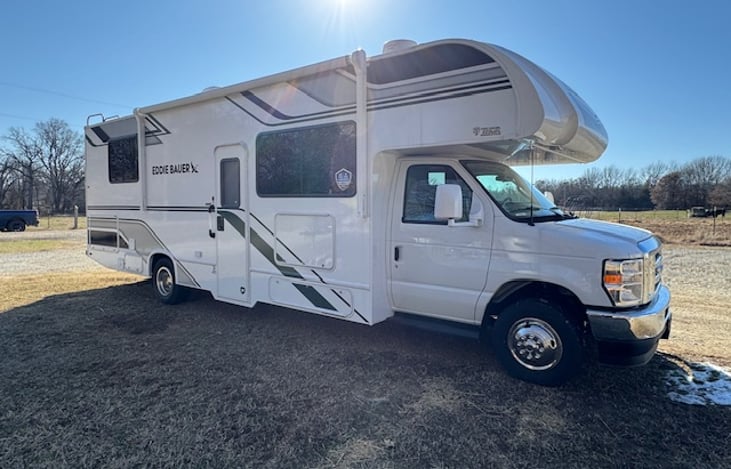 Eddie is a beautiful 2025 motor coach with 1 slide and sleeps 6 comfortably. It boasts a Ford V8 engine and is 30 ft long that is welcome in most national parks. Eddie is perfect for families or couples alike.