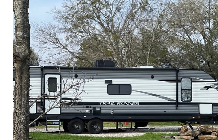 Located on a small section of our property within walking distance to Snows BBQ. It has WiFi, TV streaming access, fire pit, open yard , free range chickens, and more around in a quiet neighborhood. Hook ups are available for a 50amp service.