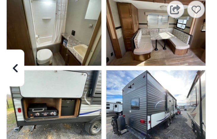 Start making memories today! Everything you need included just bring your clothes and cooler. Our 2018 Aspen Trail, has a private queen bed and double sized bunk beds. The wrap around dinette, can also be used as a bed. Fully stocked kitchen with All appliances. Has an Outdoor awning, music inside and out and a Tv with a fire stick.