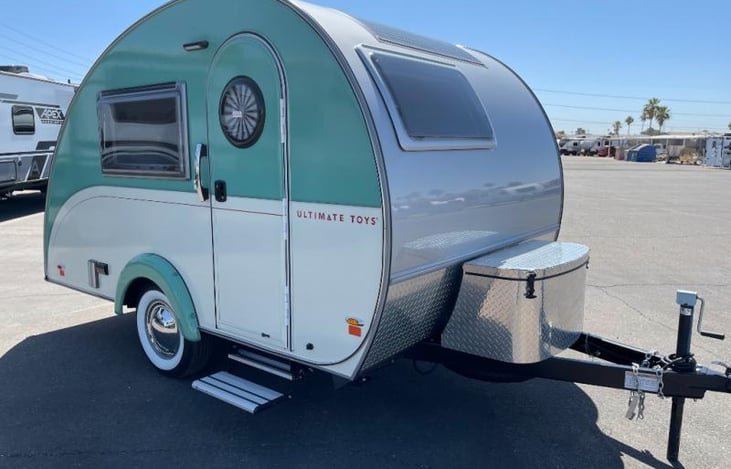 This Ultimate Toys Ultimate camper is a fantastic teardrop trailer with retro styling and tons of thoughtful design! You will love features like the dinette which can seat five or six, then at night it converts to an actual queen bed (58x80).