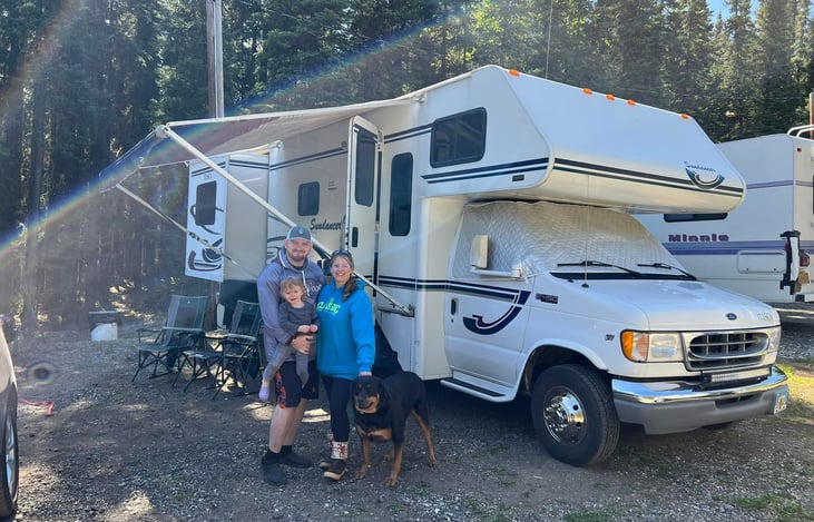 Allow “Ida,” our spacious 27ft Class C motorhome, to assist in your memory-making adventures! Once you’ve picked your spot to set up camp, Ida will be your home-away-from-home! With two slides, she’s got plenty of room inside. Enjoy a fully stocked kitchen, a bathroom, a shower, and lots of storage! This RV is equipped with a generator, AC, and a TV with a DVD player for entertainment.