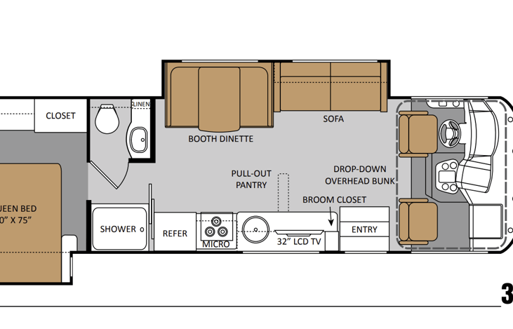 Ace is a super sought after model being a Class A RV with massive floor space but also has the Class C feature of a large over cab fold down bed. This is conveniently tucked away when it is not in use. Not to mention all of the underbody and unique inside storage, such as a large shoe compartment and storage in the steps. Every nook and cranny is utilized.