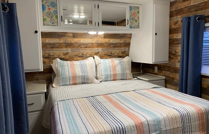 Newly renovated and clean Tagalong RV. Master bedroom has a queen size bed, living room has a full size sofa. Comfortably sleeps a total of 4 people. Full kitchen and bathroom.