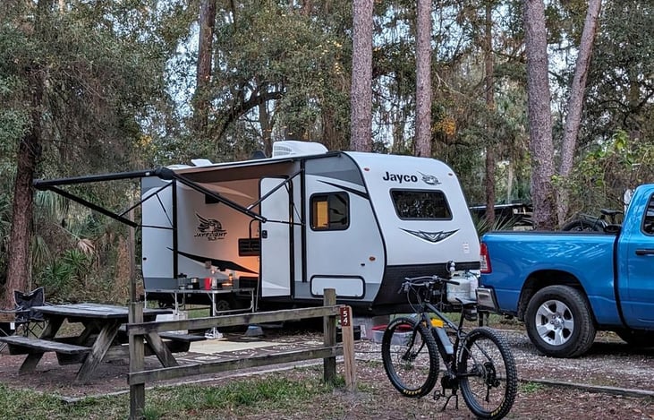 We're Tony and Carolina, and we've been Arkansas residents since 2002. We're both remote workers with enough flexibility in our schedules to operate a small RV rental business. We only have the one Jayco at the moment because we're just dipping our toe in at the moment while working hard at refining our process to provide a pleasant and friction free rental experience for you. We're not perfect...