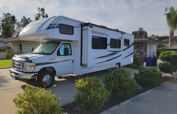 The best way to travel is in this Forester LE Class C gas motorhome! Wonderful family RV. Premium camping package. The rear bedroom offers a comfortable place for you to re-charge each night on the queen bed. The sofa comes with seatbelts for 3 and the booth dinette seat belts for two.
