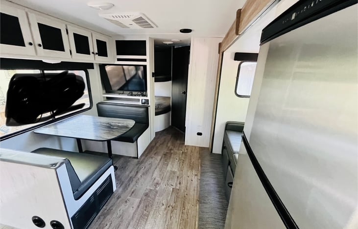 Whether you're chasing sunsets or just need a weekend escape, our 2023 Trail Runner 261BHS delivers comfort, style, and space for the whole family. This modern bunkhouse RV is perfect for Families, Couples, and First-time campers alike. Its clean, bright, and thoughtfully stocked so you can hit the road worry-free- or We'll deliver right to your site.