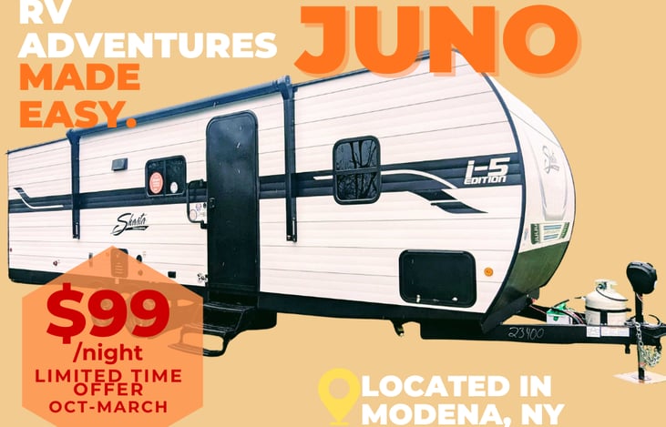 Looking for the perfect travel trailer for your next getaway? Meet Juno, our brand-new Shasta i5 Edition 526DB Bunkhouse, fully loaded and ready for adventure. Whether you're planning a weekend retreat or a full-on road trip, Juno delivers space, comfort, and style for up to 10 guests.