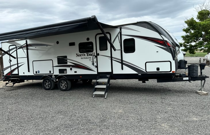 This camping season come choose to camp in this single slide out 31BHDD North Trail travel trailer! It is easier than ever to camp with your whole family or even a few friends since there is a set of double bunk beds in the rear. Enjoy your meals at the u-dinette and at night this area can convert into additional sleeping space.