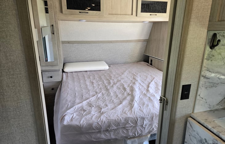 Welcome to our home on wheels! Our camper is designed for your utmost comfort and convenience. You will find it fully stocked with everything you need, including bath towels, kitchen towels, bed linen, and pillows for all sleep areas. If you want to cook, we provide pots, pans, and dishes. The camper features a full-size refrigerator, TV, and a water heater (Gas Electric Combo).