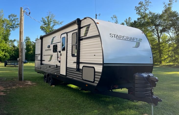 Looking for the perfect family getaway on wheels? Our 2025 Starcraft Autumn Ridge 26BHS is your ticket to adventure! This spacious and modern travel trailer comfortably sleeps up to 8 people, featuring a private queen bedroom, double bunk beds, and a convertible dinette.