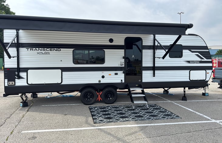 Adventure Begins with Camping Xplore. New Camper, 2025 Grand Design Transcend Xplore 26BHX. Pets allowed, tailgating allowed. Has queen bed in front bedroom. Has two bunk beds. Has foldout sofa. Has convertible dinette. French door fridge, microwave, large power awning w/led lighting. This camper has enough room for your family or friends.