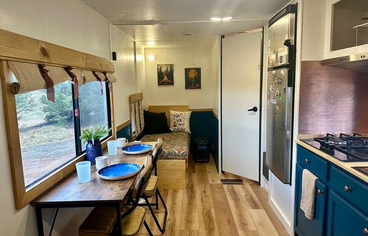 Enjoy this luxury, off-grid ready RV for your next couples get-away or family adventure! This custom renovated RV provides a spacious, open floor plan with residential finishes so that you have many of the comforts of home even while camping. Equipped with solar panels, this RV is ready for your off-grid glamping experience!