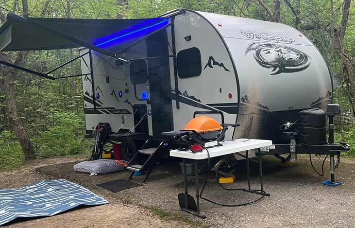 Enjoy a stay in this 2022 Forest River, Cherokee Wolf Pup Black Label edition! With a memory foam queen bed, this is the perfect couples trailer. If you have pets or littles, they are sure to love the couch that can fold down into a bed. Dinette can drop into an additional sleeping space and there is even a hidden bunk!