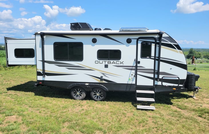 Escape to the outdoors and make unforgettable memories in our 2022 Keystone Outback 210URS—the perfect travel trailer for families, couples, and adventure seekers alike! - with a spacious king-size slide-out bed, front bunk beds, and a convertible dinette and sleeper sofa, comfortably sleeping up to 6-7 guests.