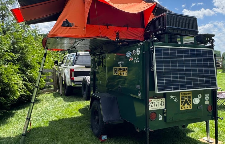 Built for explorers, outdoorsmen, or weekend warriors, the Borderland Basecamp Trailer is your rugged companion for off-grid living and overland travel. Equipped with modular sleeping space inside with AC/Heat or under the stars in the pop up tent.