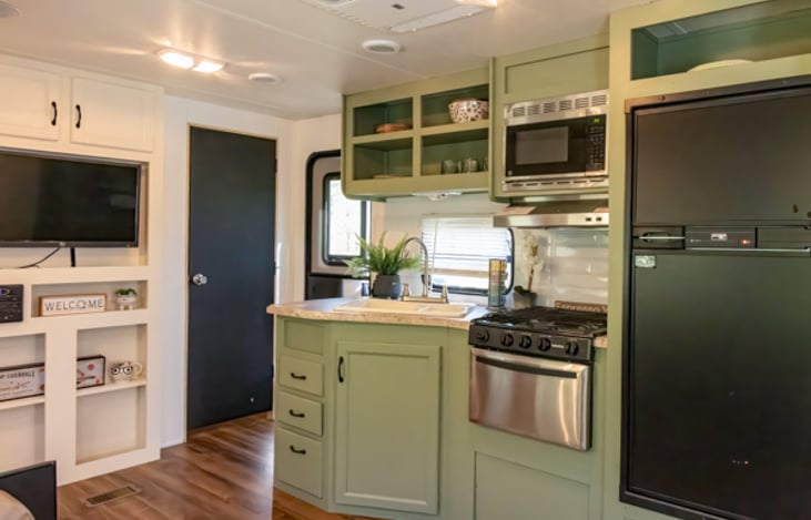 "Hooked on Fun" comes packed with fantastic features to ensure a comfortable and convenient trip. You'll find a spacious and well-equipped kitchen, allowing you to prepare your favorite meals with ease. The comfortable living area provides a relaxing space to unwind after a day of exploring, and the convenient bathroom adds to your comfort.