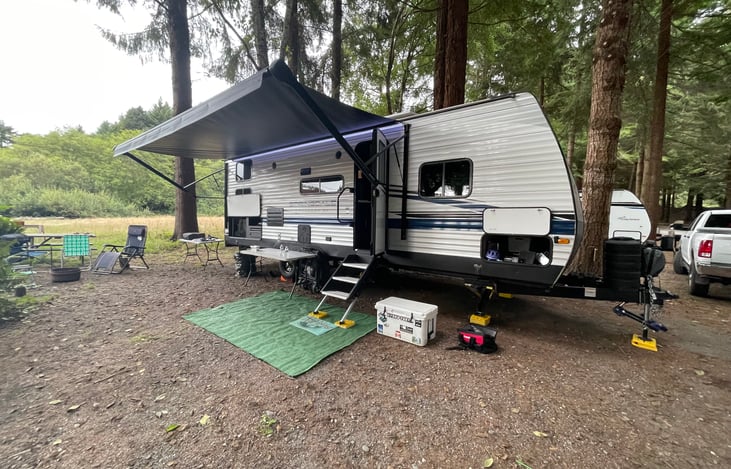 We're a growing family here to help you guys have a great time with our family Travel Trailer. Great for weekend warriors or extended getaways! We love to go camping to slow down and enjoy the elements away from the city life, it is our joy to extend those possibilities to others!