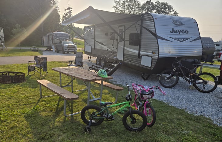 Hit the road with our 2021 Jayco Jay Flight SLX- a spacious 28ft travel trailer packed with comfort, charm, and all the essentials for an unforgettable getaway! Featuring a full kitchen inside, half kitchen outside, cozy sleeping spaces, and modern amenities, it's your home-on-wheels for family fun, couple's retreats, or solo escapes.