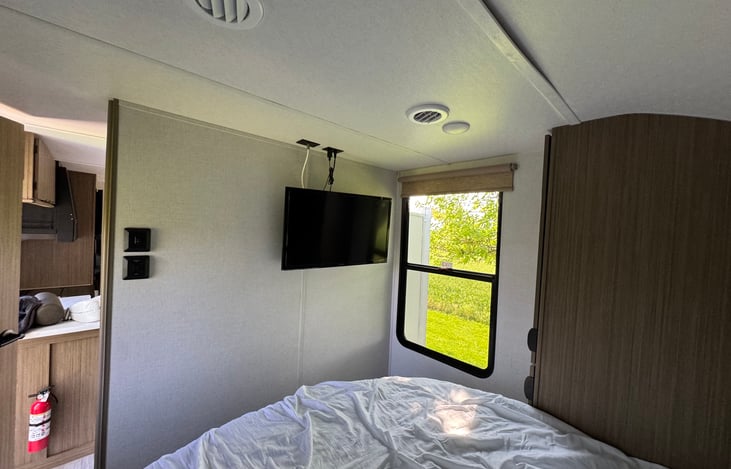 We are a family of five who love to get outside. With a busy schedule of school and sports we do not get to use our camper as much as we would like so we want others to be able to enjoy it as much as we do. It comes with everything you will need to enjoy your stay including a Blackstone griddle and a gas grill. The bedroom has a king bed that adjusts , plenty of storage and a tv. The bunkhouse ...