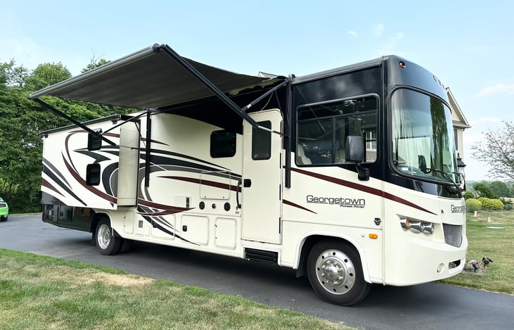 Luxury Style - 2016 Forest River Georgetown 364T – Modern Bunkhouse RV w/ 2 Full Baths | 8 Seatbelts | Washer/Dryer Unit | Sleeps 8–10 | Outdoor Shower | Pet Friendly!
