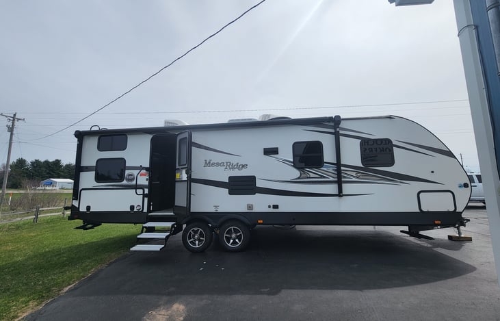 This well maintained 2018 Mesa Ridge lite with a unique layout is perfect for your next family vacation or adult getaway. Located in beautiful Grand Traverse County, just 20 minutes from downtown Traverse City. Our trailer is equipped with a very private and spacious master bedroom located at the front of the trailer, which is large enough to walk around both side of the bed.