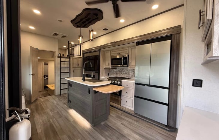 Get ready to camp in style with the ultimate home away from home. This spacious fifth wheel offers luxury, comfort, and functionality for family vacations, a romantic getaway, or friends looking to experience the outdoors without sacrificing modern conveniences.