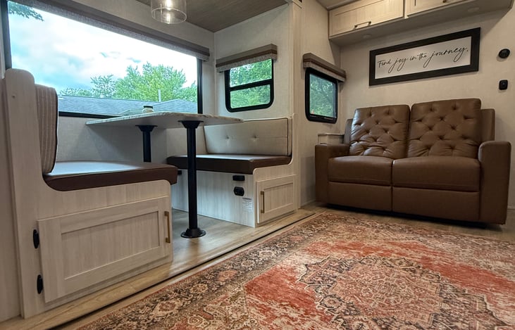 Our camper is user friendly, comfortable on a sunny or rainy day and easy to pull. Plenty of space and a huge awning with an outdoor cooking setup.