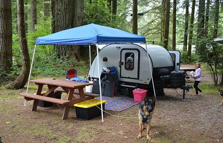 Our teardrop trailer is a perfect camping experience that will keep you outside enjoying the fresh air, while having a nice comfortable cabin to retreat to.