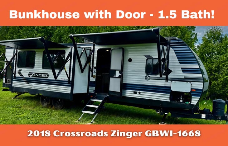 Get ready for the ultimate family camping experience with our 2022 Crossroads Zinger 333DB! This bunkhouse-style travel trailer is perfect for large families or groups, comfortably sleeping up to 10 guests with room to spare.