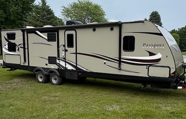 DELIVERY ONLY! Our 2017 Passport has everything you need to make your getaway the most memorable trip ever. Spacious living area with room to sleep up to 8, 5 very comfortably. This camper is fully stocked with all of the essentials for cooking such as pots, pans and utensils. Coffee maker (K-Cup Style), paper towels, paper plates and toilet paper are also provided.