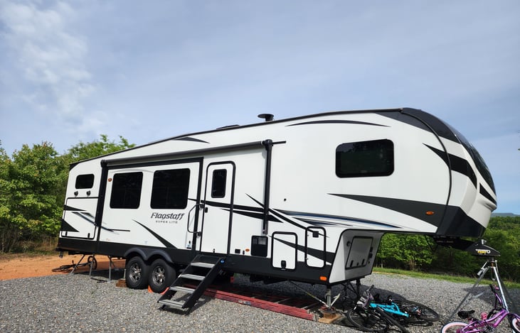 Everything needed to have an enjoyable camping experience. We have dual air units, 1 1/bathrooms, kitchen with all appliances that includes refrigerator/freezer, cooking utensils, pot and pans. We 4 have outdoor zero gravity chairs as well as an outdoor projector with screen. The outside has a refrigerator, Blackstone as well as a TV.