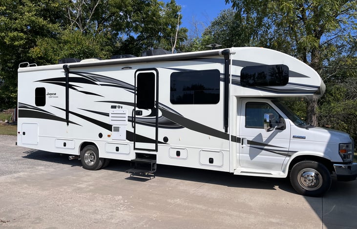 Hi! We’re Mark and Kelley Devereaux from Oakley, Michigan, self-employed real estate investors who love RV travel. We bought this rig to follow our kids’ college sports and now we’re excited to share it with you in the summer!Our daughter, Ava, plays volleyball at Heidelberg University, and our son, Trent, was a QB at Alma College (Class of 2024) and is now a GA football coach at Lawrence Tech. Ou...