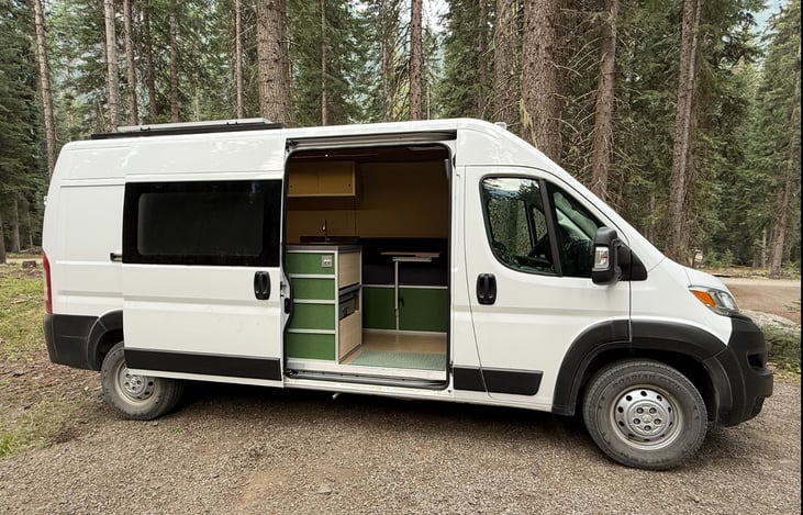 Welcome to our dream van! Our 2023 Ram Promaster 2500 camper van was built by us, for us, but you can enjoy it too! Our van is ideal for a couple and their dog to enjoy the great outdoors around the PNW! The van was designed for comfort and easy non-intimidating systems to use.