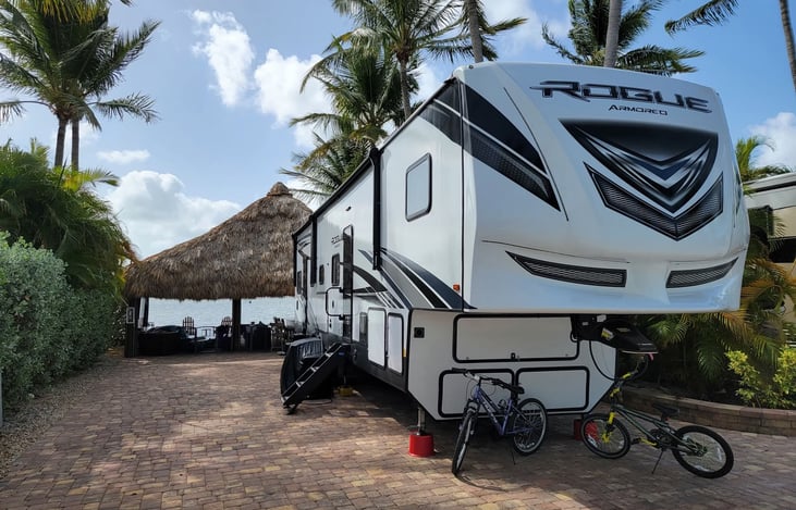 Beautiful camper king size bed great shower 2 bathrooms nice kitchen full size refrigerator/ freezer electric fireplace we highly recommend this RV communication was great !!! Thank you for everything!!!
