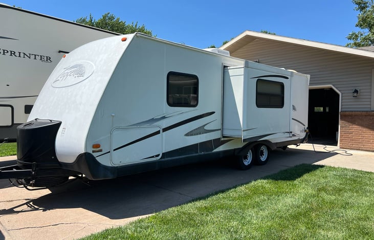 Make lasting memories for a great value in our kid friendly travel trailer! Well taken care, clean, odor free and ready to make some memories! Stocked with extra blankets, games (indoor/outdoor), cooking items, grill, cooler, and of course a TV to end the night!