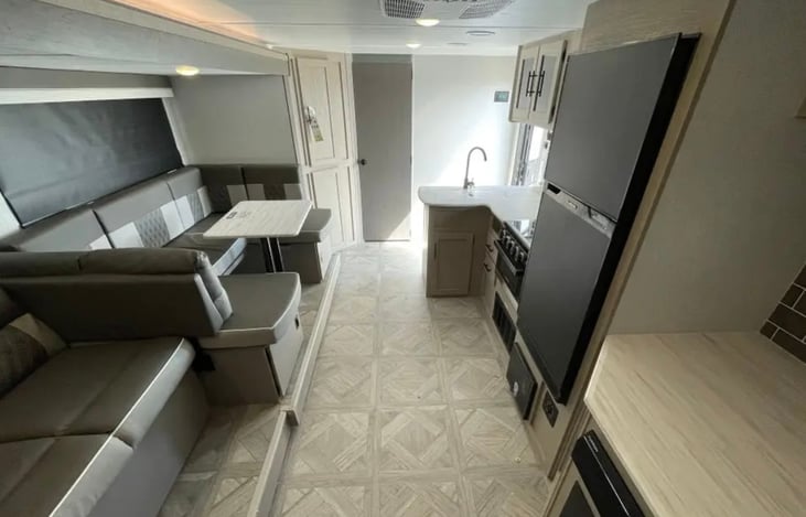 Brand new beautiful trailer! Outdoor kitchen, outdoor shower, sound system in & outside of trailer. Large bathroom & shower! KING BED!