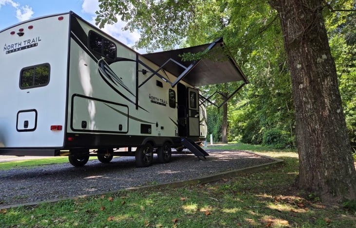 The North Trail is one of the newest, most modern additions to the Auburn Camper Rentals family, providing an exceptional blend of comfort and convenience in a compact, towable package. At 27 feet, this unit is designed to comfortably sleep up to 8 guests, making it a perfect choice for mid-sized families or group tailgates.